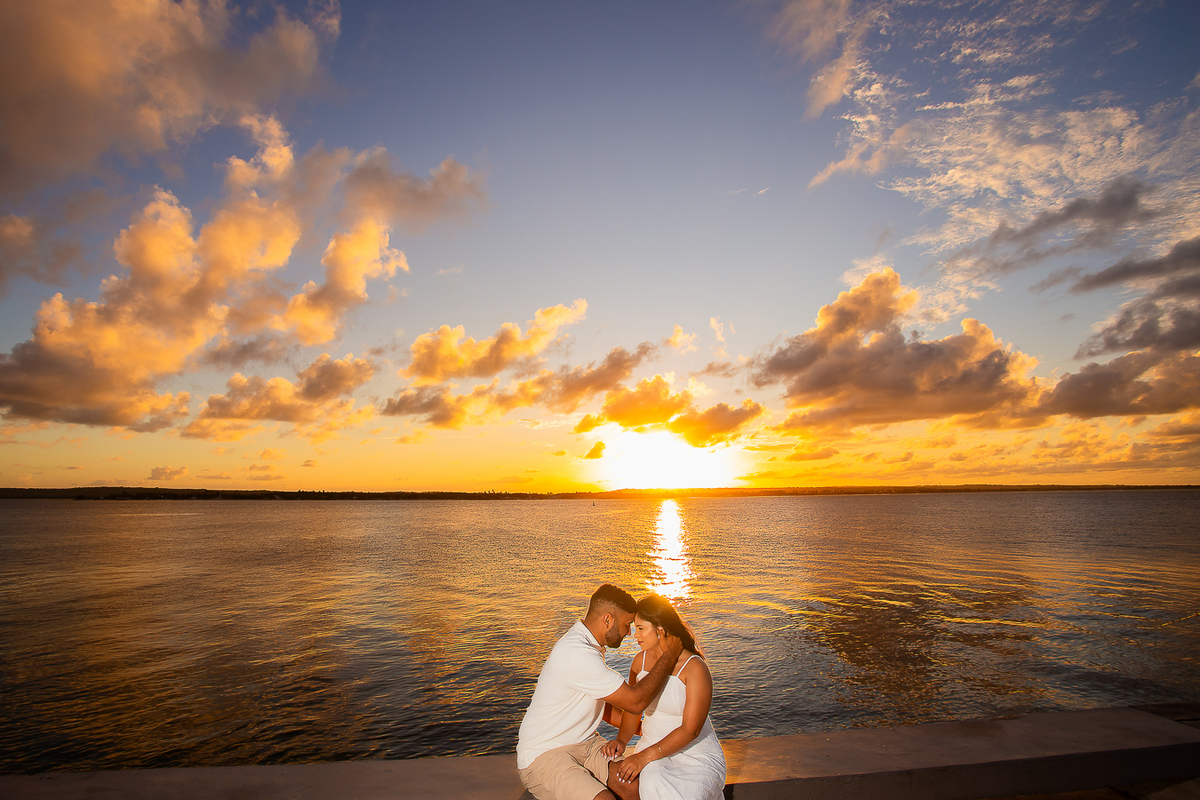 De lá, seguimos para o Dique de Cabedelo, onde o pôr do sol nos presenteou com uma luz dourada cinematográfica. Foi nesse momento que tudo se encaixou com ainda mais magia: os olhares cúmplices, os gestos suaves e o amor traduzido em imagens que falam por si.