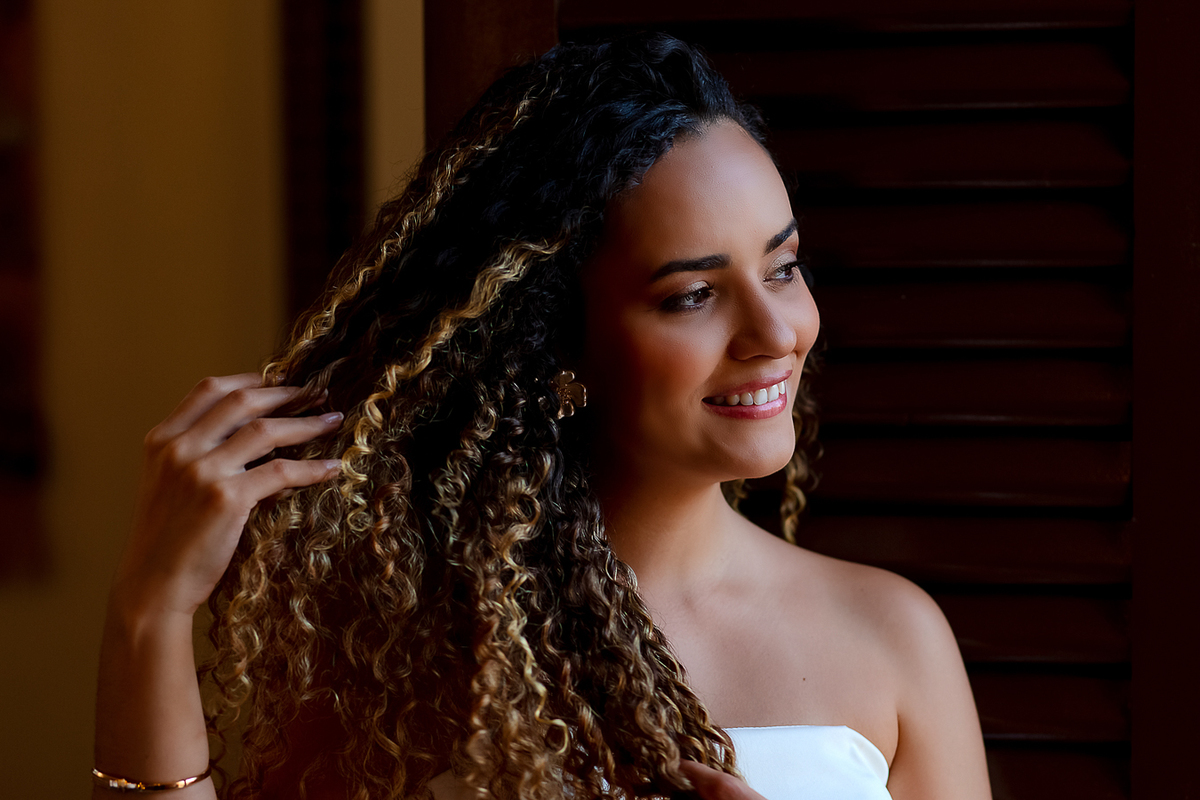 A noiva, com seus cachos lindíssimos e cheios de personalidade, trouxe uma presença marcante e radiante a cada clique. Já o noivo, com seu jeito tranquilo e sorriso fácil, completou a harmonia perfeita entre os dois. Juntos, formam um casal inspirador — daqueles que a gente fotografa sorrindo o tempo todo.